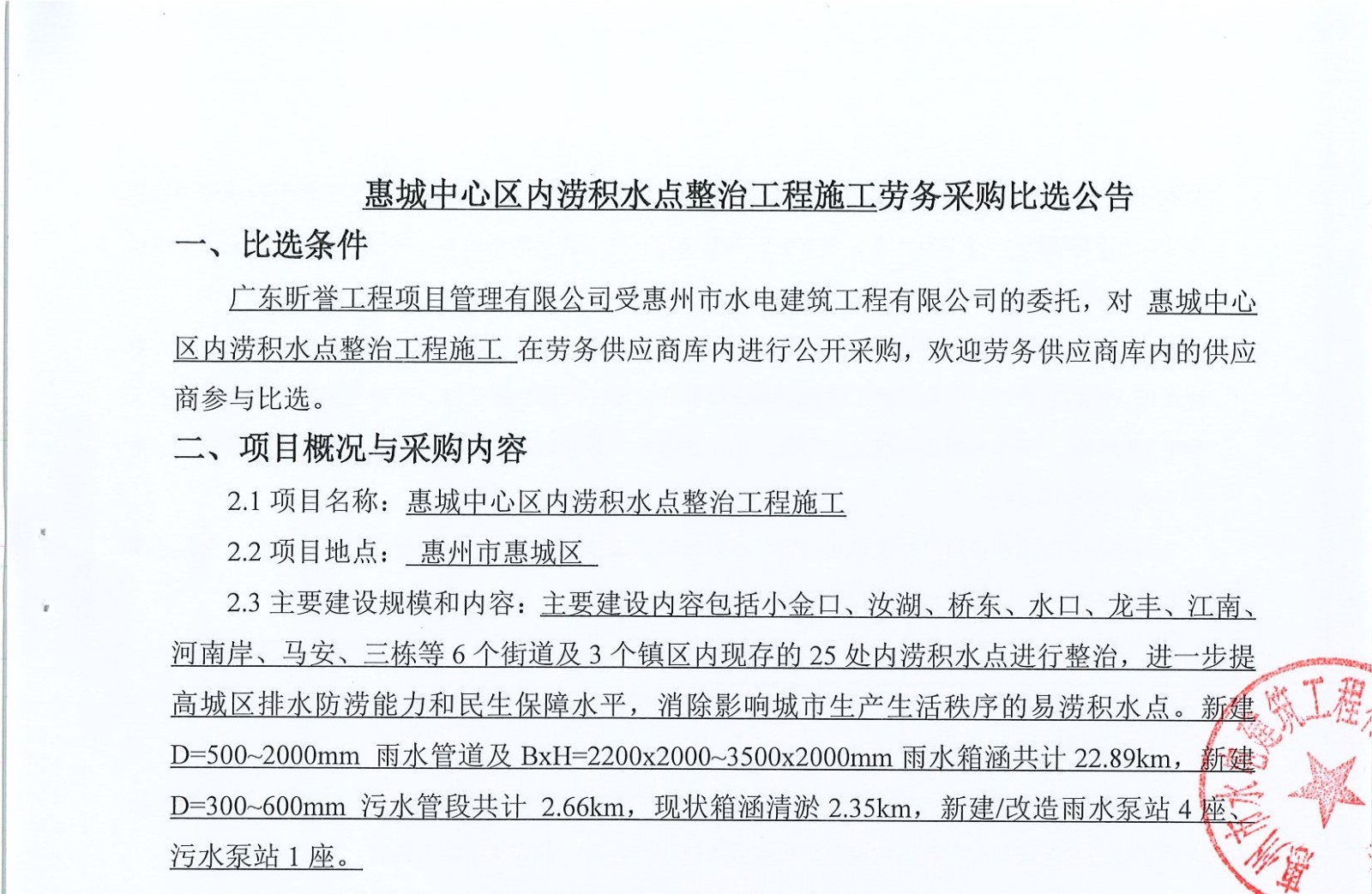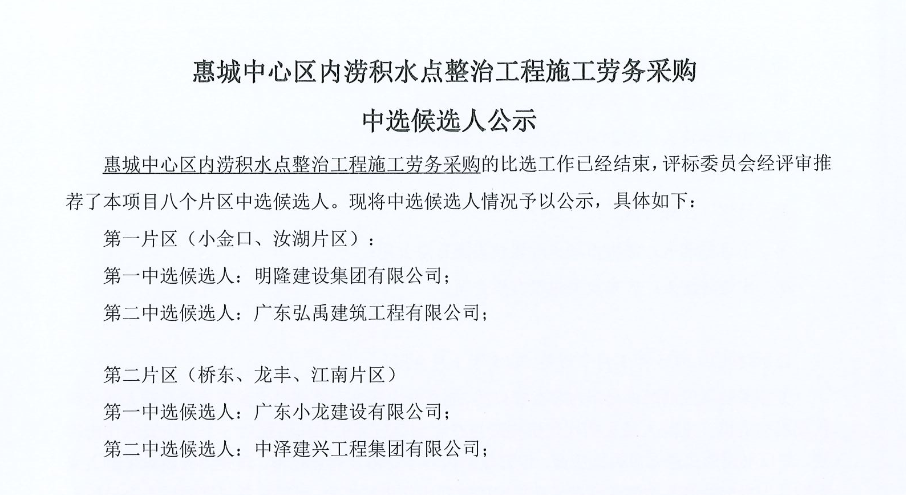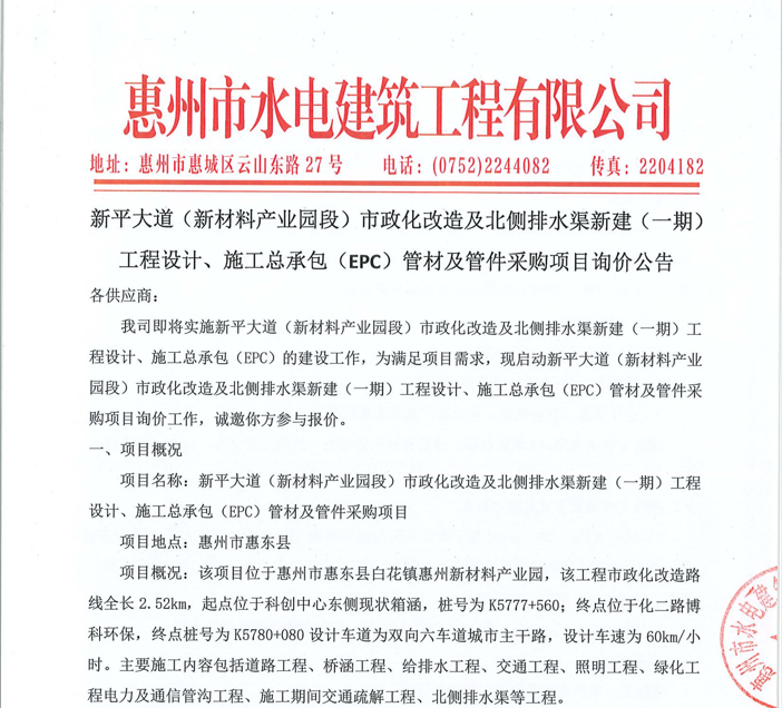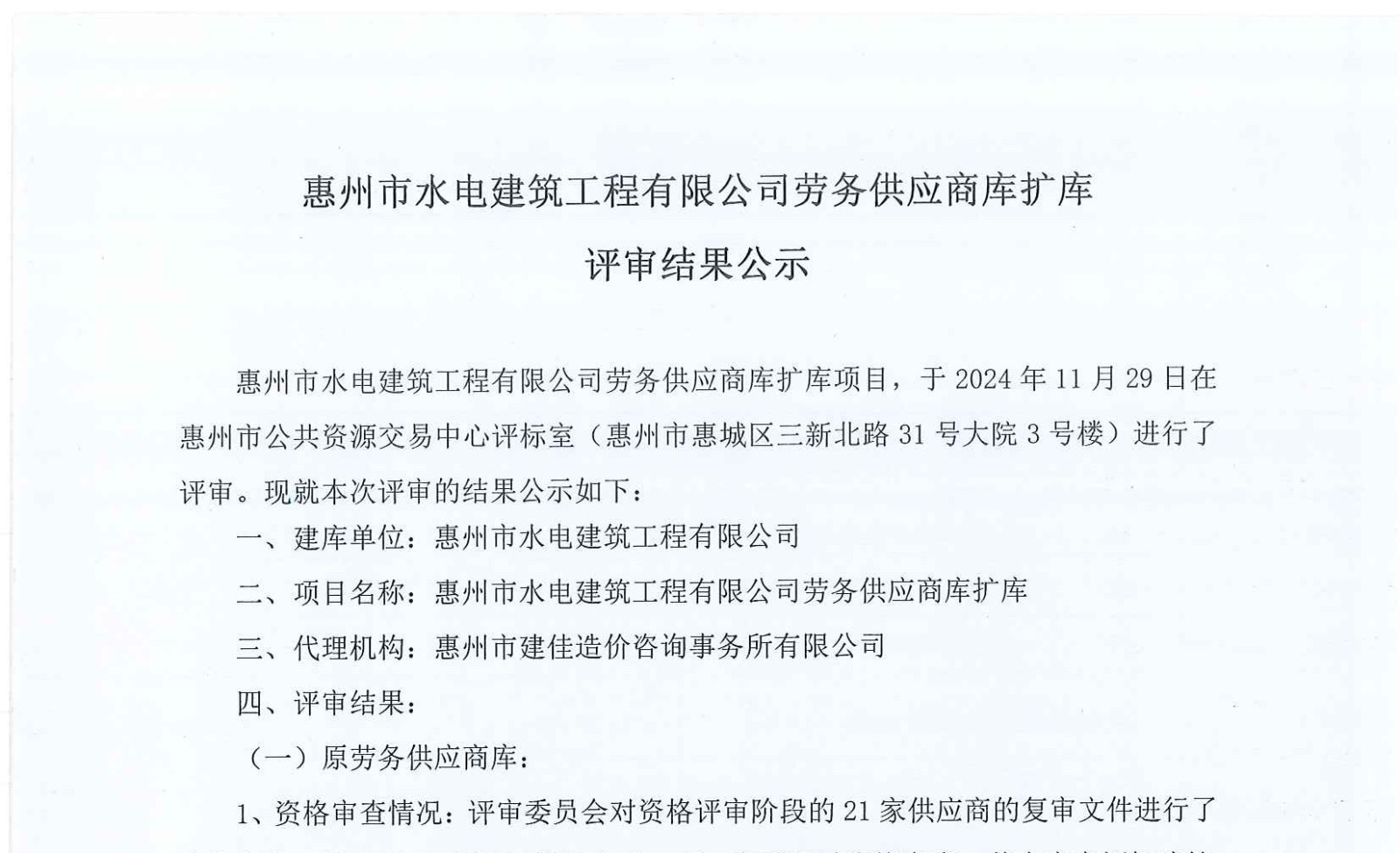 惠州市水電建筑工程有限公司成立于一九六四年四月,隸屬惠州市水務(wù)集團(tuán)有限公司,是一家國(guó)有綜合性施工企業(yè),主營(yíng)水利水電工程、房屋建筑、市政工程等施工業(yè)務(wù)。公司擁有水利水電工程施工總承包一級(jí)、建筑工程施工總承包一級(jí)、市政公用工程施工總承包一級(jí)、公路工程施工總承包三級(jí),公路路基、路面及建筑裝修裝飾專業(yè)承包二級(jí),環(huán)保工程、機(jī)電安裝、河湖整治、輸變電工程專業(yè)承包三級(jí)等經(jīng)營(yíng)資質(zhì)……